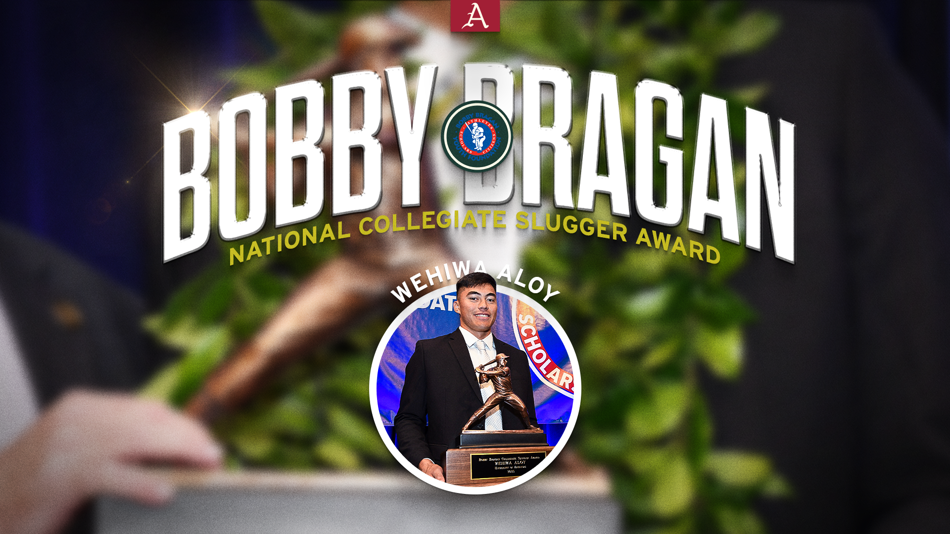 FAYETTEVILLE, Ark. – Arkansas’ Wehiwa Aloy has added another national honor to his long list of accolades, winning the Bobby Bragan National Collegiate Slugger Award as the nation’s top college baseball hitter.