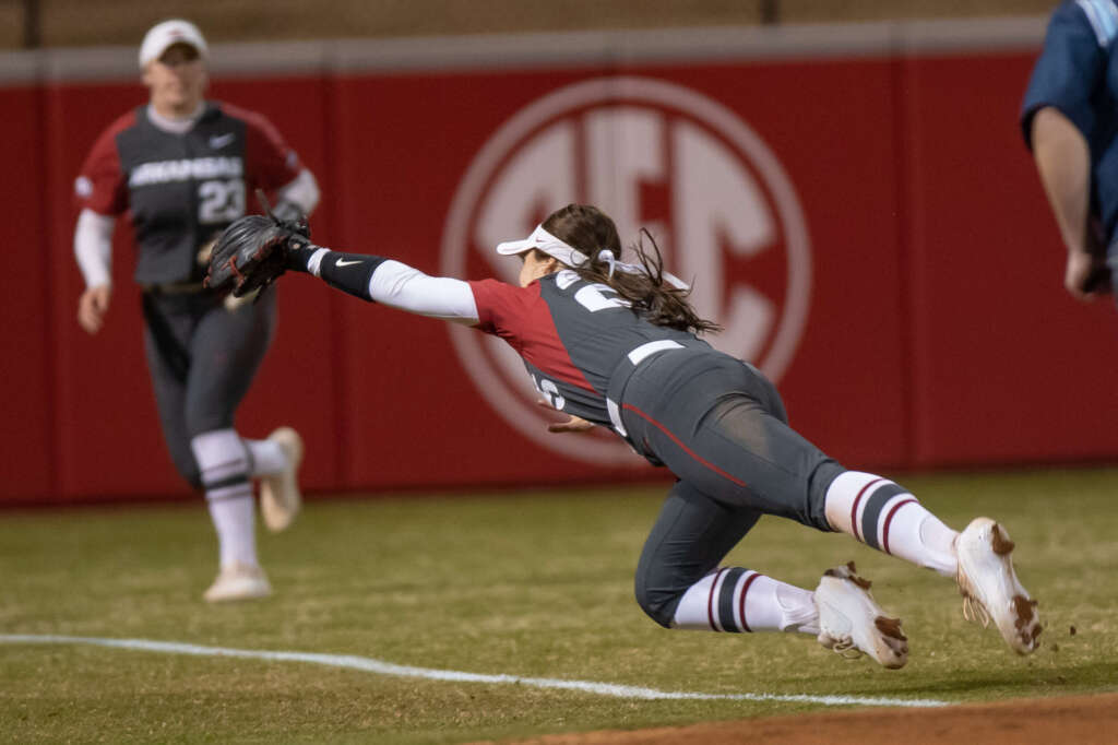 Junior shortstop Braxton Burnside provided all of Arkansas' runs with one swing of the bat against No. 23 Baylor, but the Razorbacks would eventually fall, 3-2. The Lady Bears were the first ranked non-conference team to visit Bogle Park since 2014.
