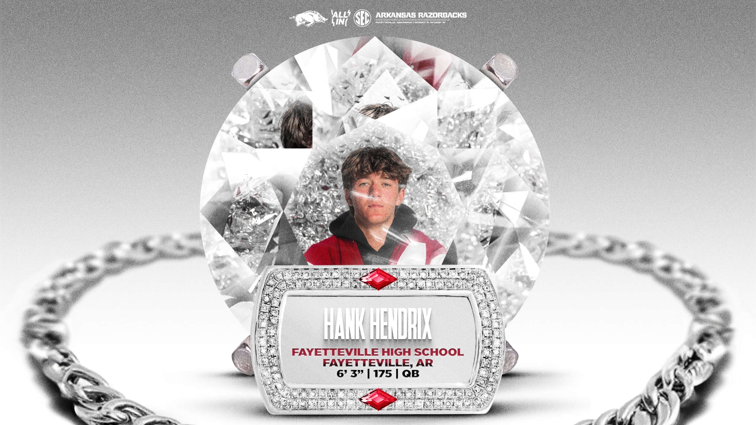 A four-star recruit out of Fayetteville HS according to 247Sports Composite and ranked the No. 30 QB in the nation after reclassifying from 2027 class, where he was ranked as the No. 5 QB nationally, No. 80 overall prospect and No. 1 recruit in Arkansas by On3.com … Started 34 games in three years in his high school career, amassing 9,425 yards and completing 67.4% of his passes … In his lone season at Fayetteville HS, passed for 3,602 yards and 32 touchdowns and six interceptions while completing 63.1% of his passes to go with six rushing touchdowns … At Boerne (TX) HS as a junior he passed for 4,237 yards with 46 touchdowns and six interceptions on 70.4% passing over 15 games … Started as a true freshman in 2023, passing for 1,586 yards with 18 TDs and one interception while completing 70.4% of his passes across nine games … CHOSE ARKANSAS OVER: Auburn, Baylor, Duke, Michigan, Michigan State, Minnesota, Missouri, Oklahoma State, Ole Miss, South Carolina, Syracuse, Texas Tech, UTSA, Virginia Tech, Washington State, Wisconsin and others.