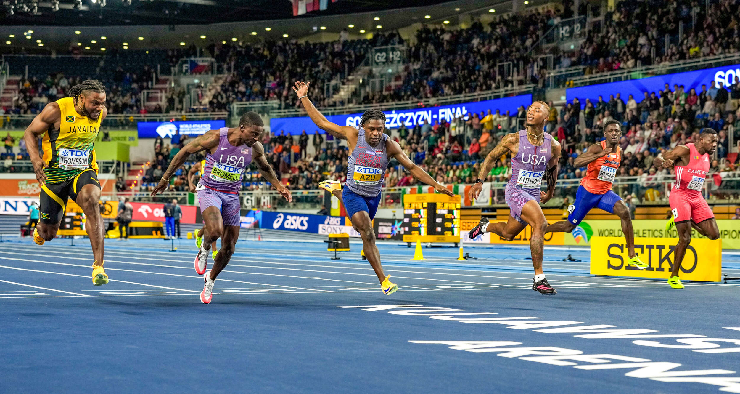Anthony claimed the 11th 60m title by an American since the World Indoor Championships started in 1985. Double winners have included Justin Gatlin (2003, 2012) and Christian Coleman (2018, 2024).