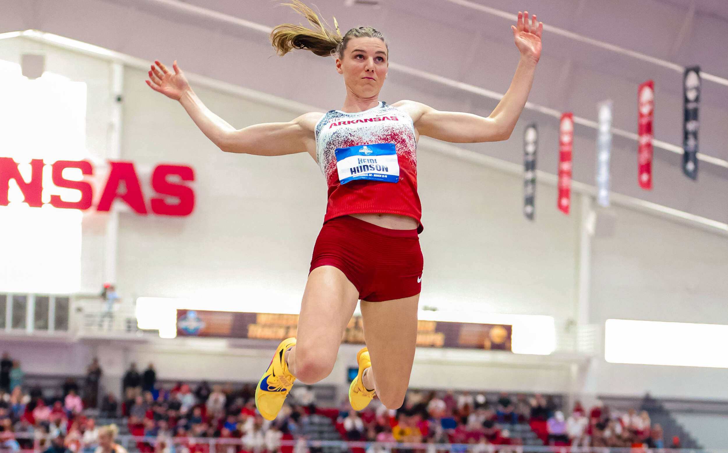 FAYETTEVILLE – No. 5 Arkansas scored six points from two finals on the first day of the NCAA Indoor Championships held at Randal Tyson Track Center. Heidi Hudson placed fourth in the long jump while Sydney Vaught finished eighth in the 5,000m.