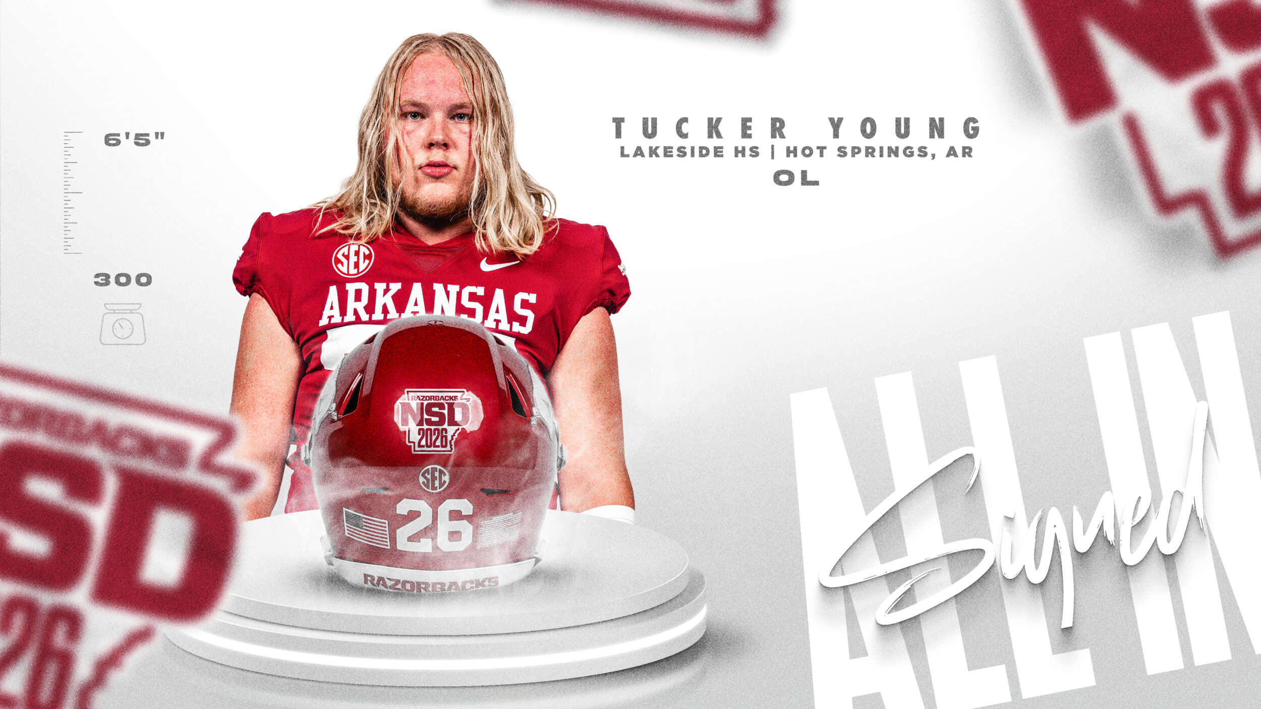 A consensus three-star prospect according to 247Sports, Rivals and ESPN … Rated the No. 12 overall prospect in Arkansas by ESPN and No. 15 overall prospect in Arkansas by 247Sports and Rivals … Attends Lakeside High School in Hot Springs, Ark … Also competed in track and field … Named a finalist for the 2025 Willie Roaf Award, presented to the top high school offensive lineman in the state of Arkansas … Led Lakeside to a 10-3 record and 5-1 mark in district play as a senior … Paved way for 5,432 yards of total offense including an average of 417.9 yards per game in 2025 … Started every game at left tackle as a junior in 2024, leading the Rams to a 10-3 overall record, including a 6-1 mark in conference play … Blocked for an offense that averaged 198.8 passing yards and 215 rushing yards per contest as a junior … Reports a bench press of 365 pounds, a squat of 515 pounds and a time of 5.1 seconds in the 40-yard dash … CHOSE ARKANSAS OVER: Memphis and others