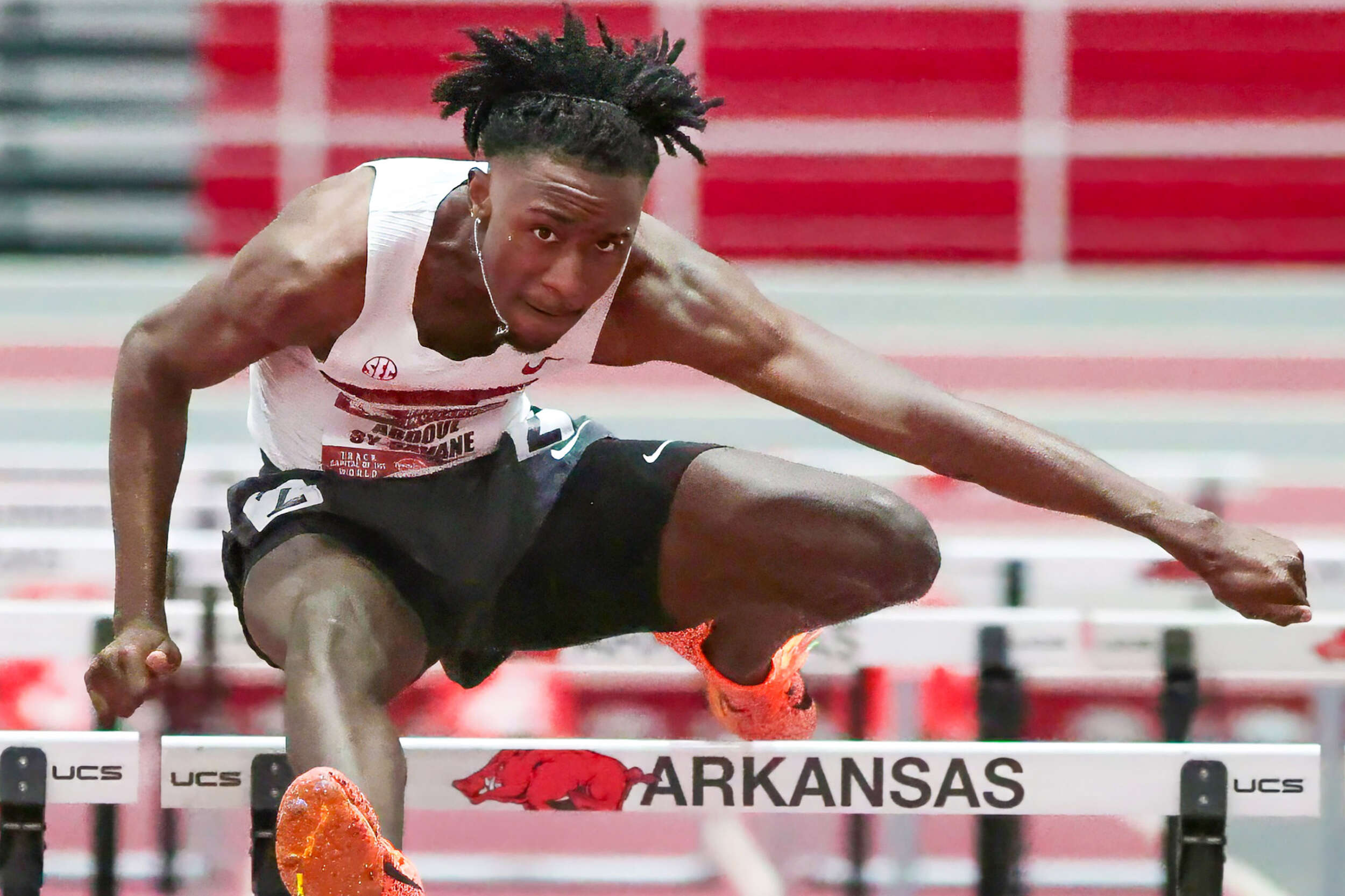 Sy-Savane equaled his career best of 7.68 to win the 60m hurdles at the Wooo Pig Classic by the narrowest of margins over teammate Karamoko Sacko, who also clocked 7.68 as runner-up. The difference between the pair of Razorbacks was 0.004 of a second.